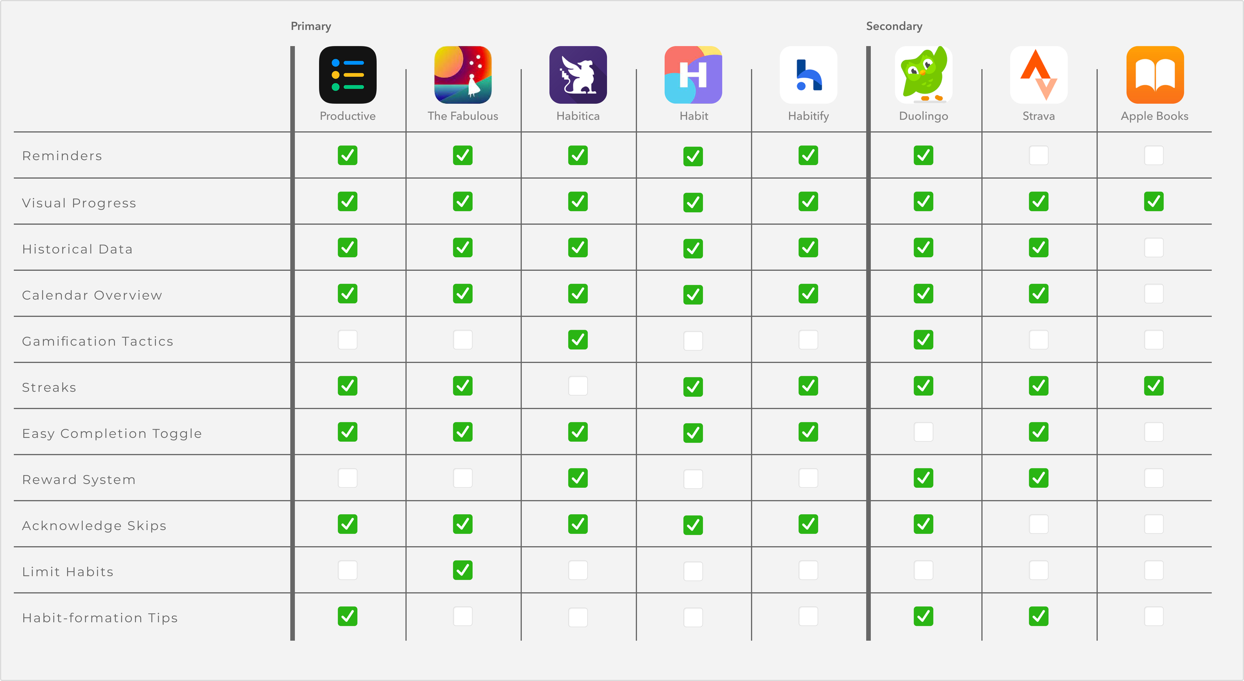 I wanted to uncover what features top players valued within the productivity space with competitive market research.